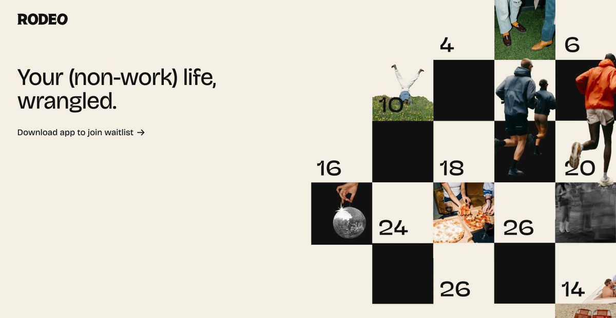 Rodeo is an AI-powered app for coordinating activities and making plans with friends you already know. It was created by Sam Levy and Tim Mac Gougan, both former executives at Hinge, the dating app owned by Match Group. The founders identified that making plans with existing friends had become increasingly difficult due to fragmented group chats, competing schedules, and the friction of pulling event details from various sources.