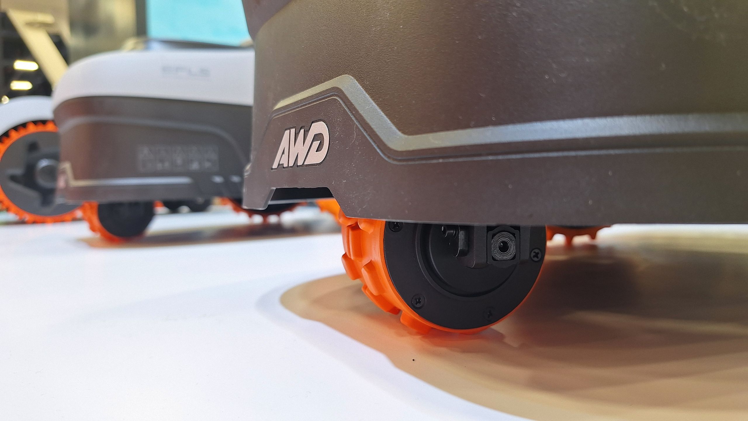 It features IP54 water resistance, meaning it can operate in light rain and handle wet grass without electrical issues. The chassis is ruggedized plastic over a sturdy frame, designed to withstand impacts without breaking apart. Tires are engineered for traction on various surfaces—from flat lawns to slopes up to 25 degrees.