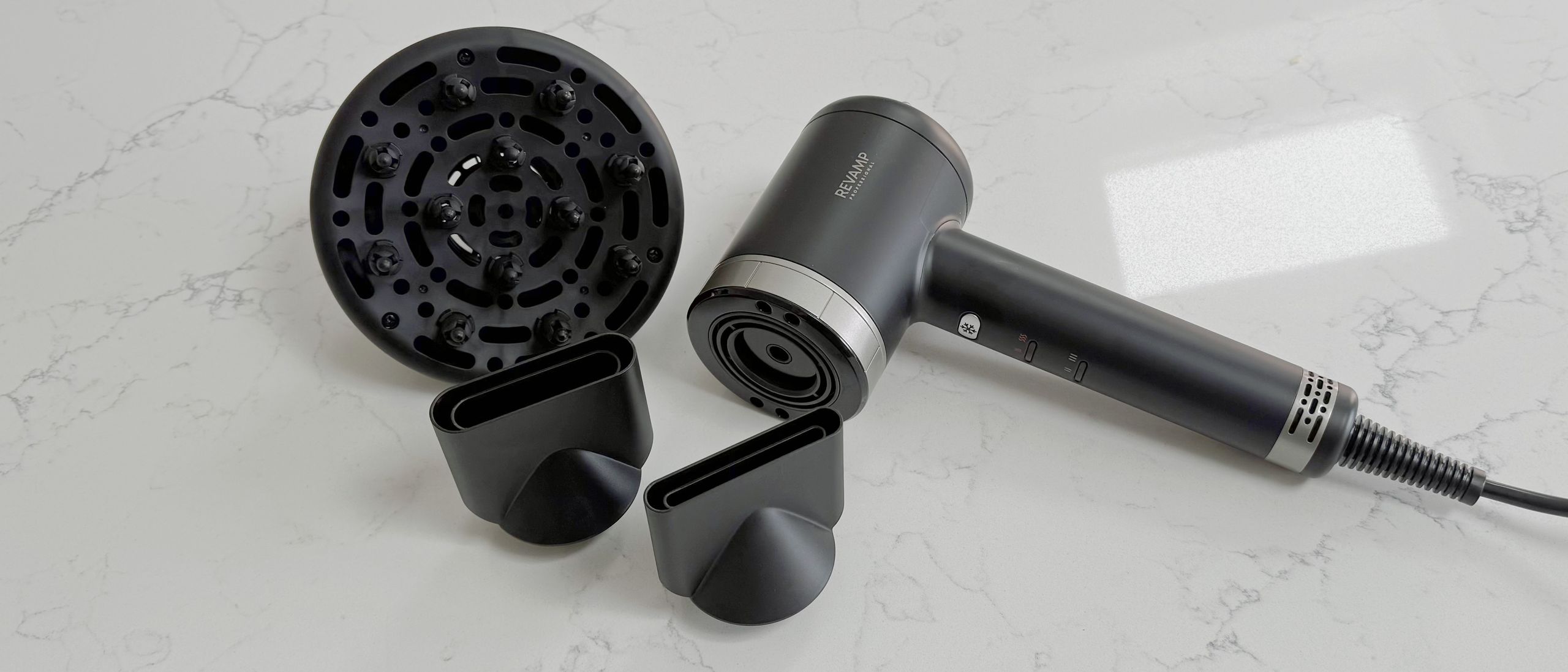 The included diffuser and nozzles give the Revamp Tri-Care flexibility for both curls and smooth finishes (Image credit: Future)