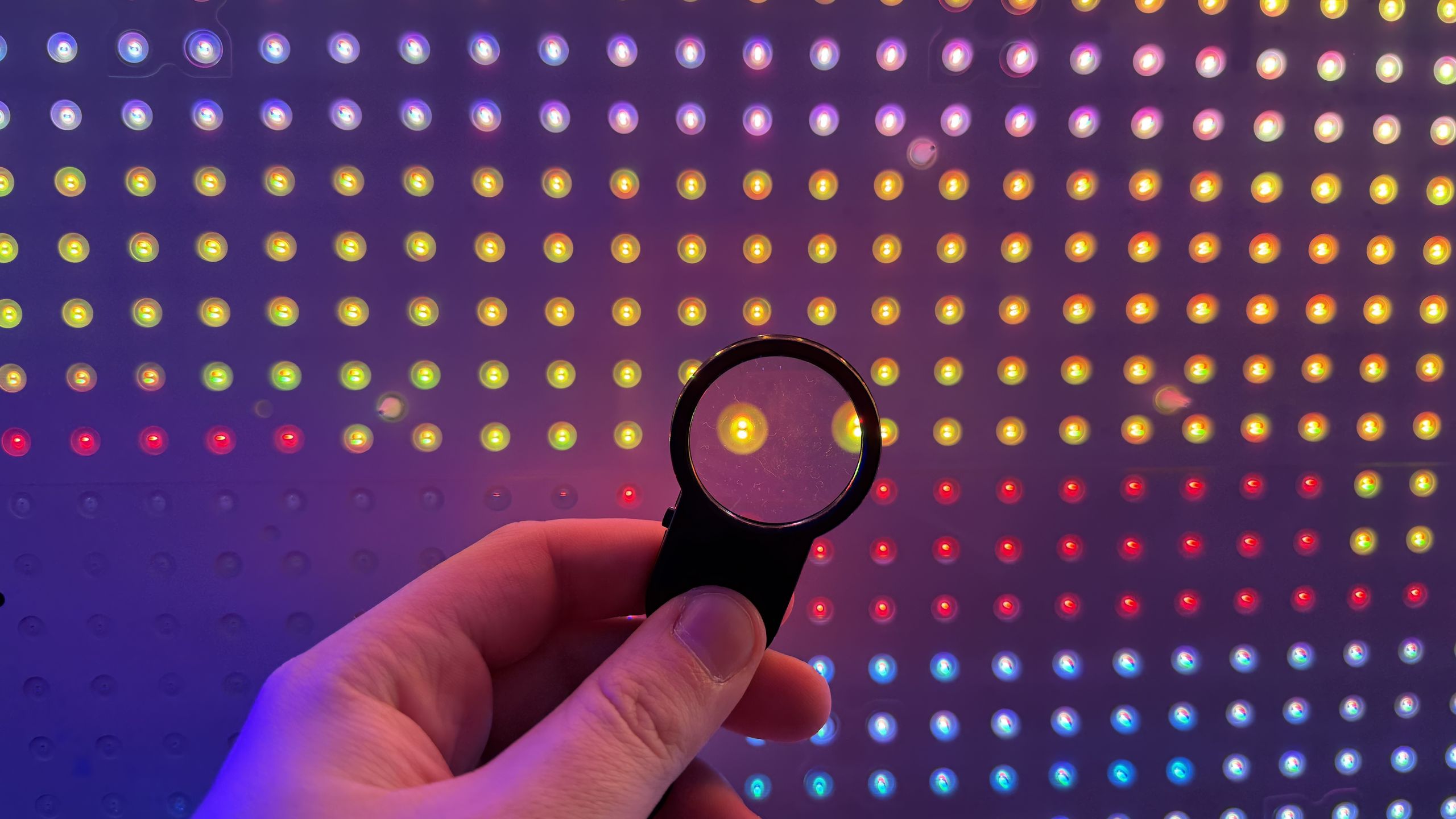 The company said that the red element even uses an individual control chip per red LED, because the red wavelength needs the most careful management. For green and blue, the two LEDs are each controlled by one chip.