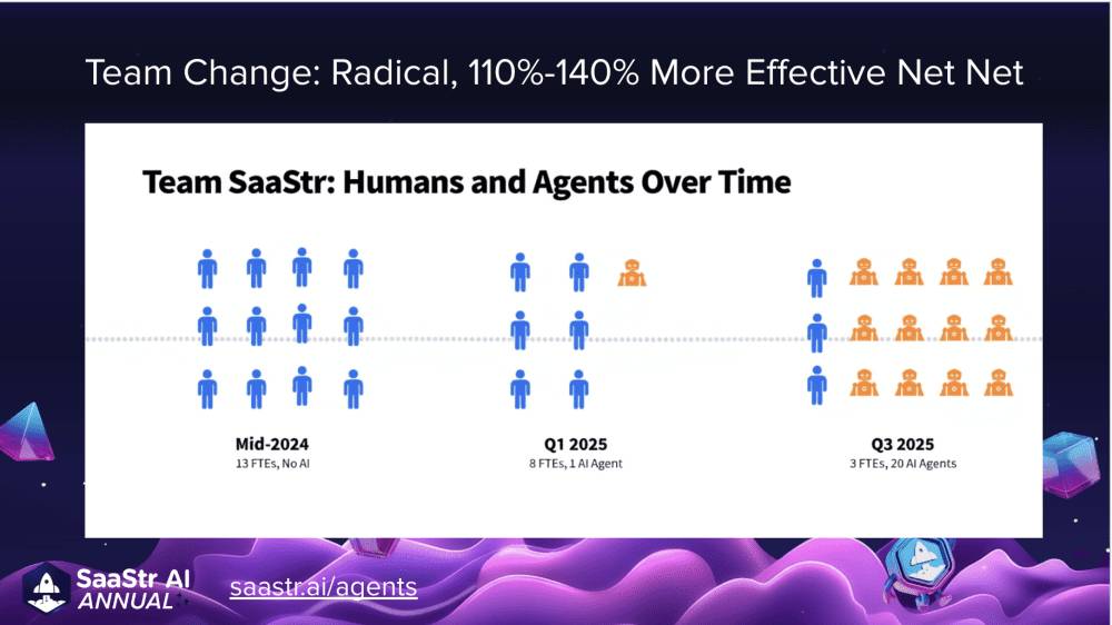 But that’s the point: we didn’t have the very best classic, larger human sales team. We had 1.25 humans and 20 AI agents. And in aggregate, they did 140% of the work of a far larger all-human team from a year ago. If nothing else, it was dramatically more efficient. And while that wasn’t the goal — it was also a lot cheaper.